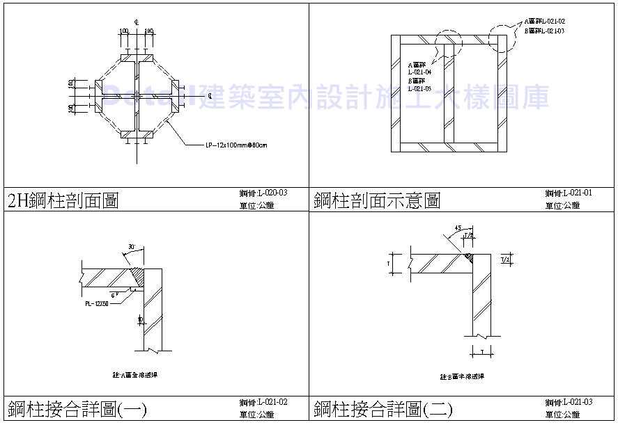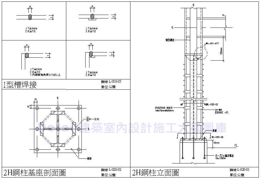 鋼骨鋼構施工細部圖 I型槽焊接 2H鋼柱基座