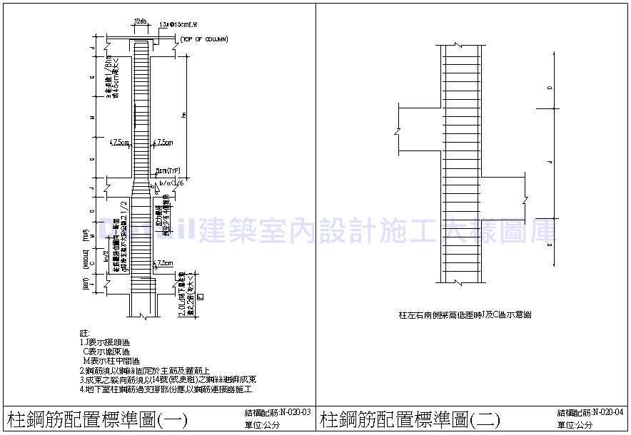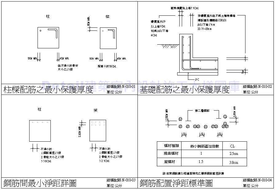 柱樑配筋最小保護厚度 基礎配筋最小保護厚度 鋼筋配置淨距 |