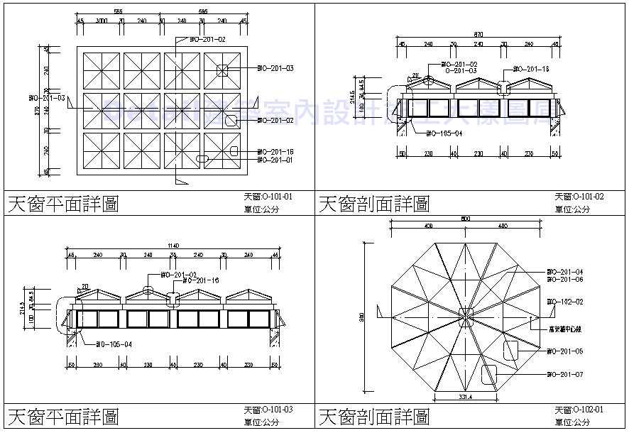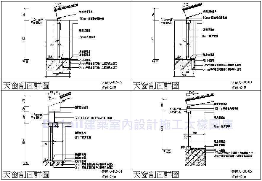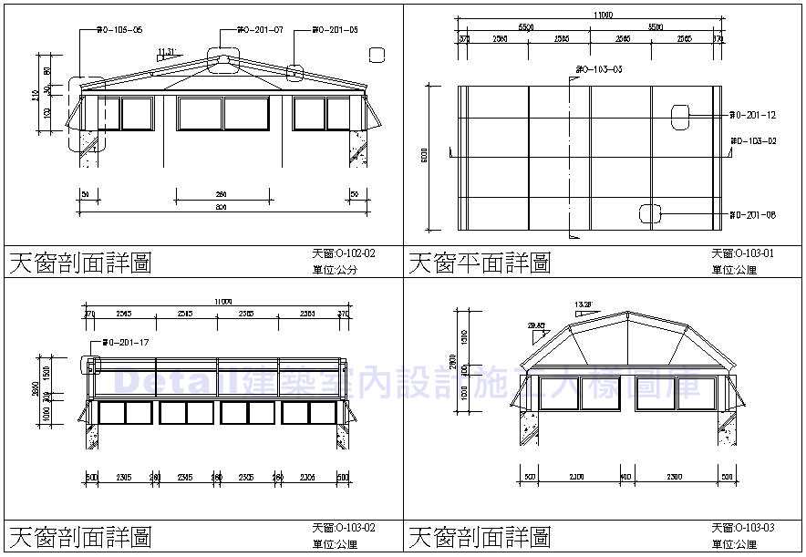 天窗施工細部圖 天窗平立面詳圖 天窗剖面詳圖 |