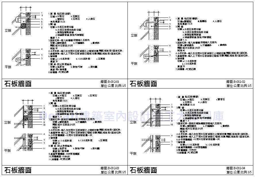 牆面施工細部圖 石板牆面 |