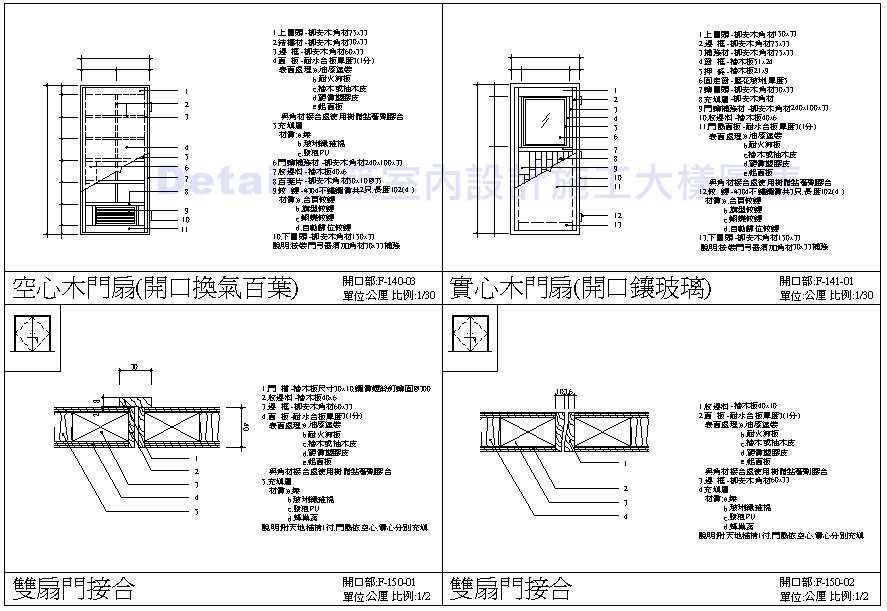 開口部施工細部圖 實心木門扇 百葉木門扇