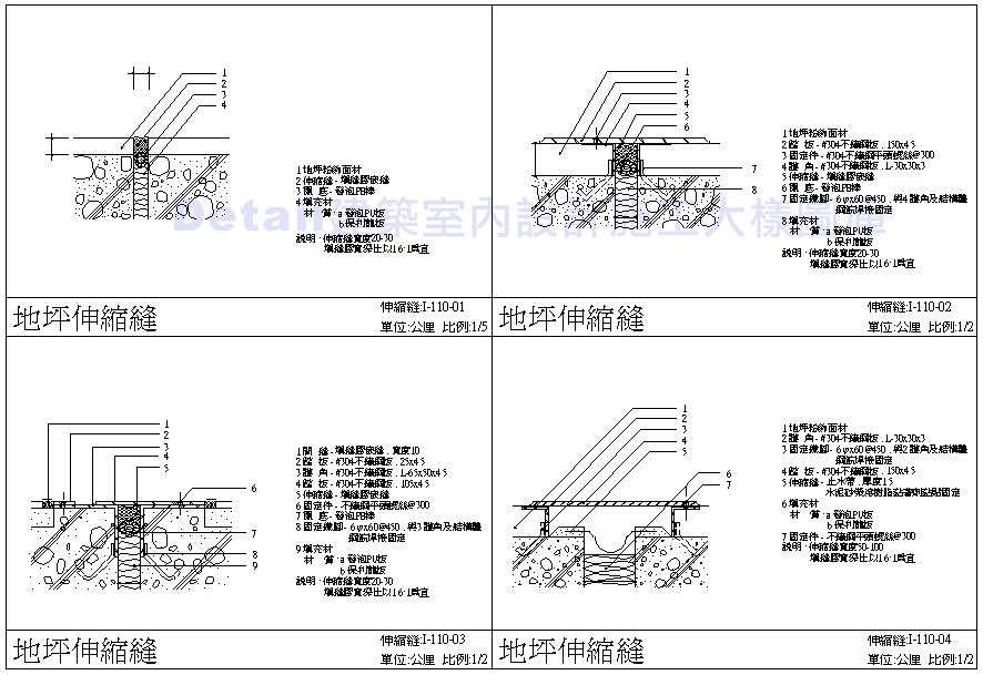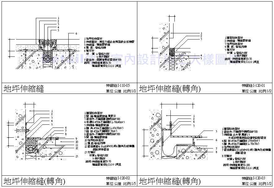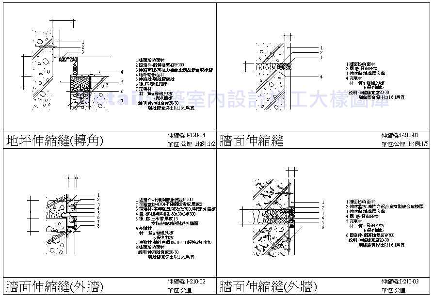 伸縮縫施工細部圖 地坪伸縮縫 牆面伸縮縫 |